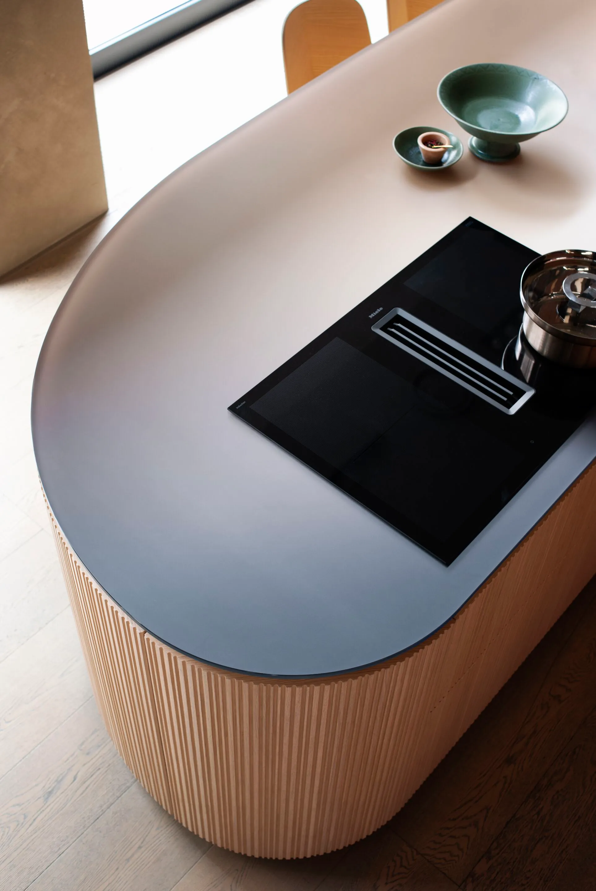 Drawing inspiration from the sophisticated glasswork of the last century, Nuances features a dynamic use of colour that evokes the fluidity of polished and frosted glass, seamlessly combining substance and translucence for a soft and silky finish. In fact, Nuances makes it possible to create highly elegant visual effects, exalting the sophisticated variations in colour of the Tangram island and appealing to a clientele that seeks originality.