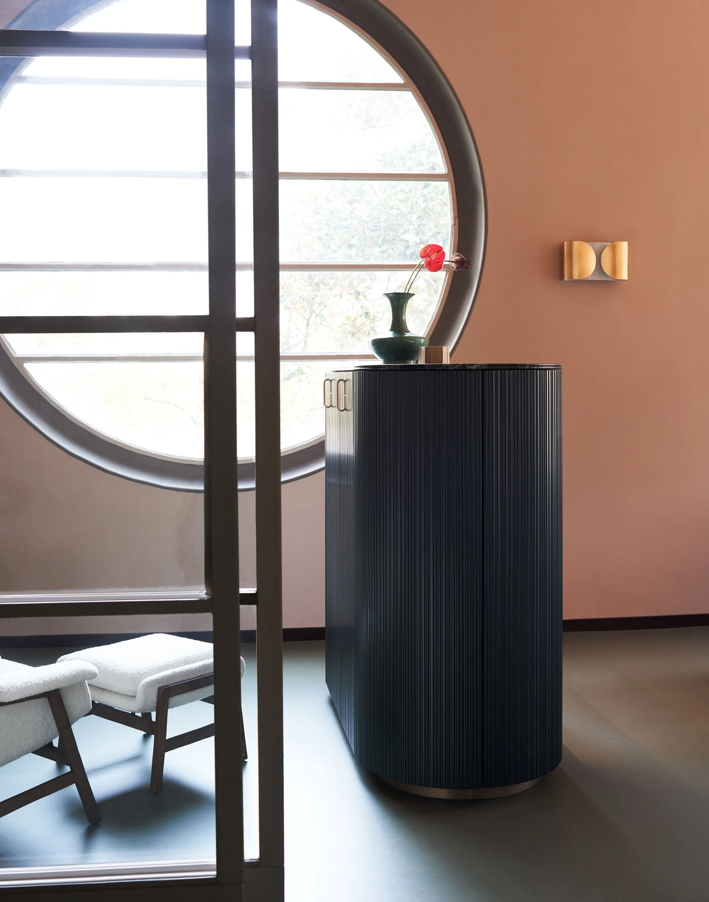 Groove door in Verde Comodoro Anodyc metallic effect lacquered