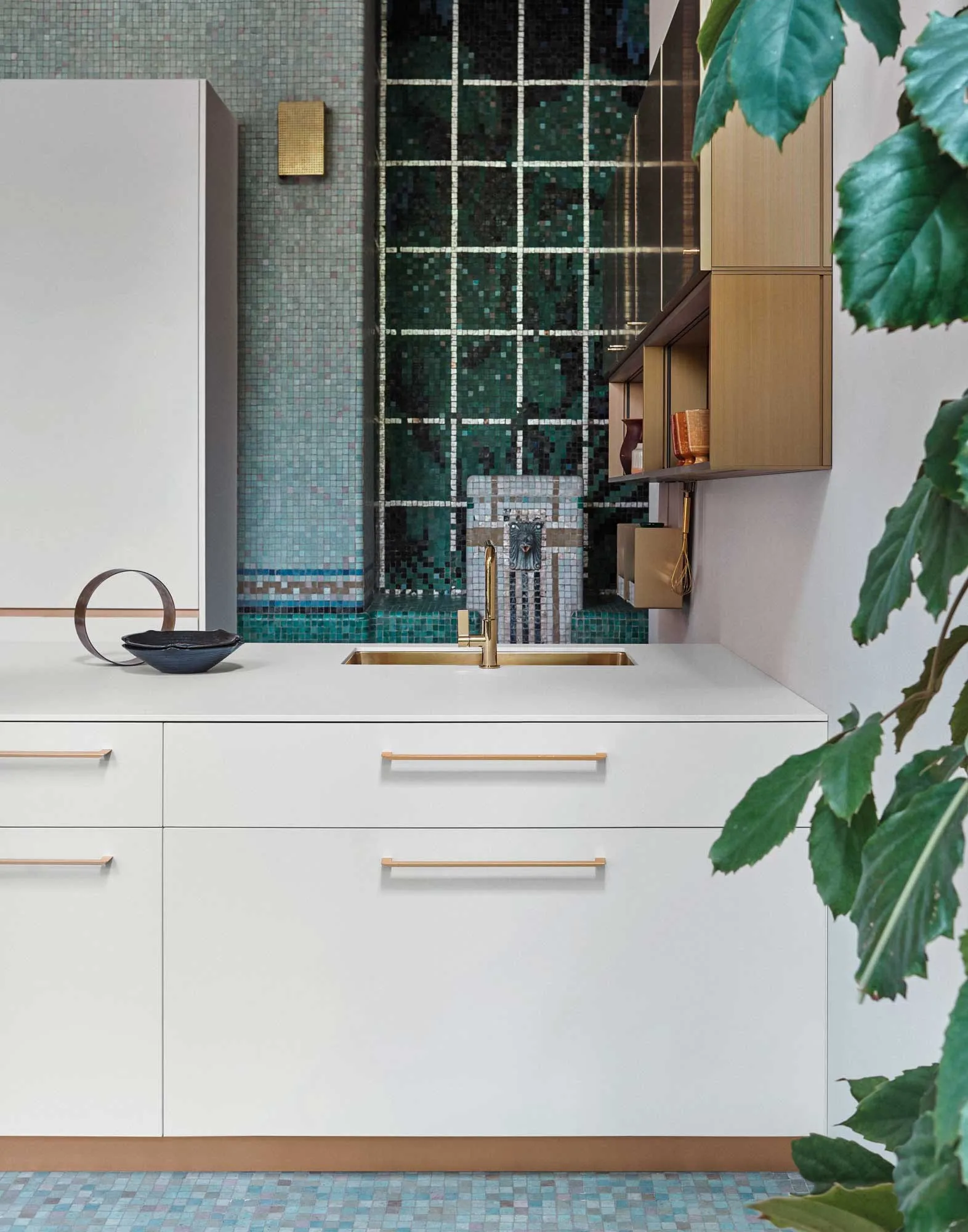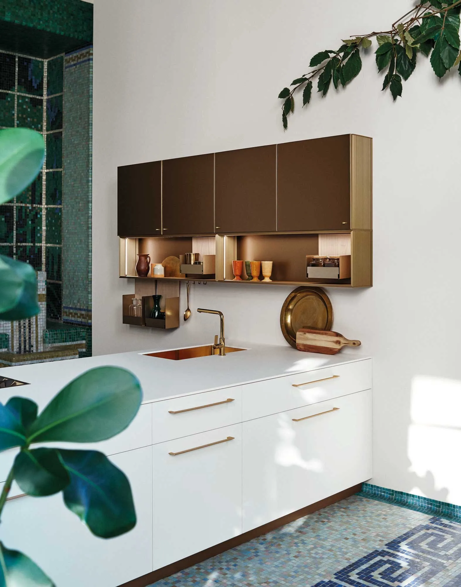 Dressup: Champagne frames, Ottone Anodyc metallic effect lacquered splashback and doors.