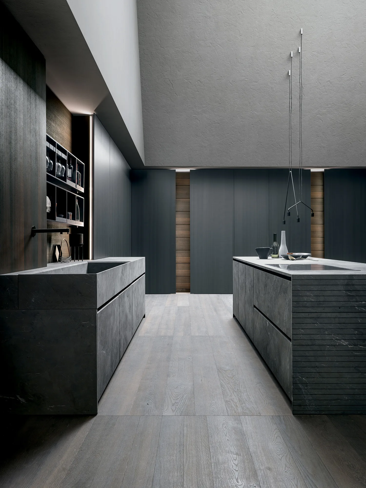 Blade Lab stone kitchen furniture is the apex of Modulnova projects: through research and the use of new technologies we have been able to transform a ‘heavy’ material into a ‘light’ one suitable for kitchens.